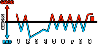 1試合を通じてどのシーンが盛り上がったかを視覚的に伝えます。