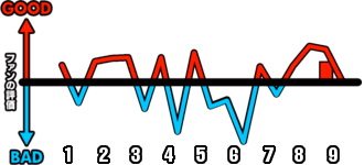 1試合を通じてどのシーンが盛り上がったかを視覚的に伝えます。