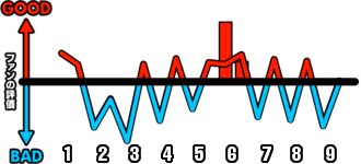 1試合を通じてどのシーンが盛り上がったかを視覚的に伝えます。