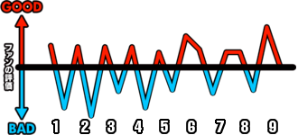 1試合を通じてどのシーンが盛り上がったかを視覚的に伝えます。