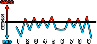 1試合を通じてどのシーンが盛り上がったかを視覚的に伝えます。