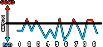 1試合を通じてどのシーンが盛り上がったかを視覚的に伝えます。