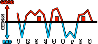 1試合を通じてどのシーンが盛り上がったかを視覚的に伝えます。