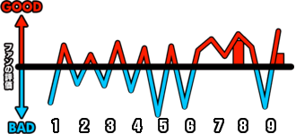 1試合を通じてどのシーンが盛り上がったかを視覚的に伝えます。