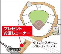 当日配布するプログラムに記載してますラッキーナンバーでご当選された方には、選手直筆サインボールをはじめ、デジタルカメラなど人気の電化製品をどーんとプレゼント!ご当選された方は、お帰りの際に球場外のプレゼントお渡しコーナーまでお越しください。