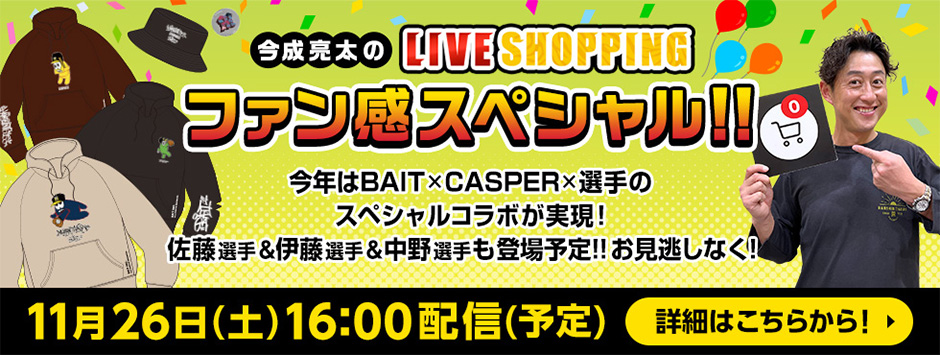 また「今成亮太のLIVE SHOPPINGファン感スペシャル」では、選手とのコラボグッズを販売いたします。