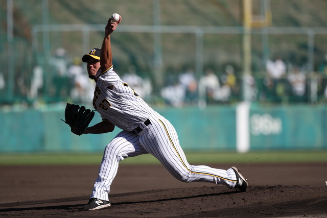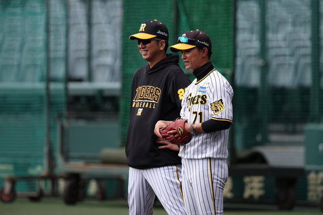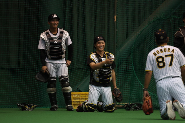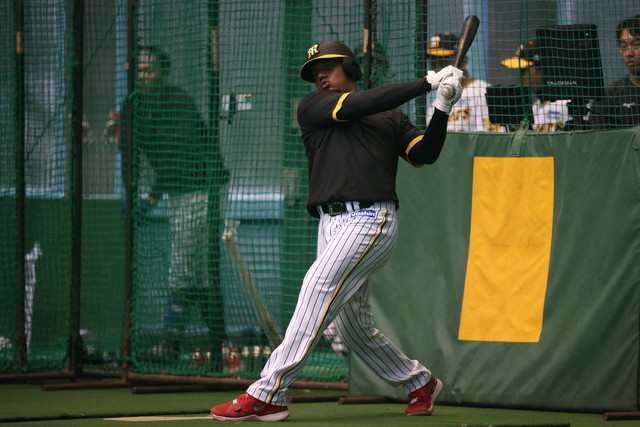 午後の室内練習には、この日育成契約を結んだパナマ出身のジーン・アルナエス内野手(前ブルージェイズ傘下)が合流した。藤川監督とも笑顔で挨拶を交わし、早速初日から爽やかな汗を流している。右投右打で内野複数ポジションと捕手も出来るユーティリティな22歳は『毎日全力プレー』がモットーで伸びしろ十分。来季の秘密兵器になり得る素材だ。