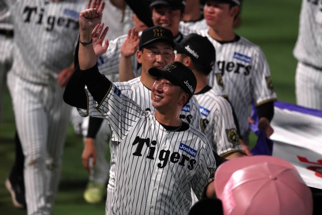 就任一年目のシーズンを振り返った藤川監督は、「私がするべきことは、口で言うより行動で示すことと思ってこの一年戦った。リーグ優勝の報告をできたのは、言葉より行動を大事にしたその勝負に、自分が打ち勝ったのではないかと思う」と納得の表情。「90年目を預からせていただいた監督としては、芯を持った強い、心のブレの少ないチームを作ることを体現できたんじゃないか」とうなずいた。