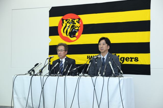 日本シリーズ終戦から一夜明けた10月31日(金)、藤川監督が大阪市内の阪神電鉄本社を訪れ、秦雅夫オーナーにシーズン終了を報告。その後、粟井一夫球団社長と共に会見を行った。