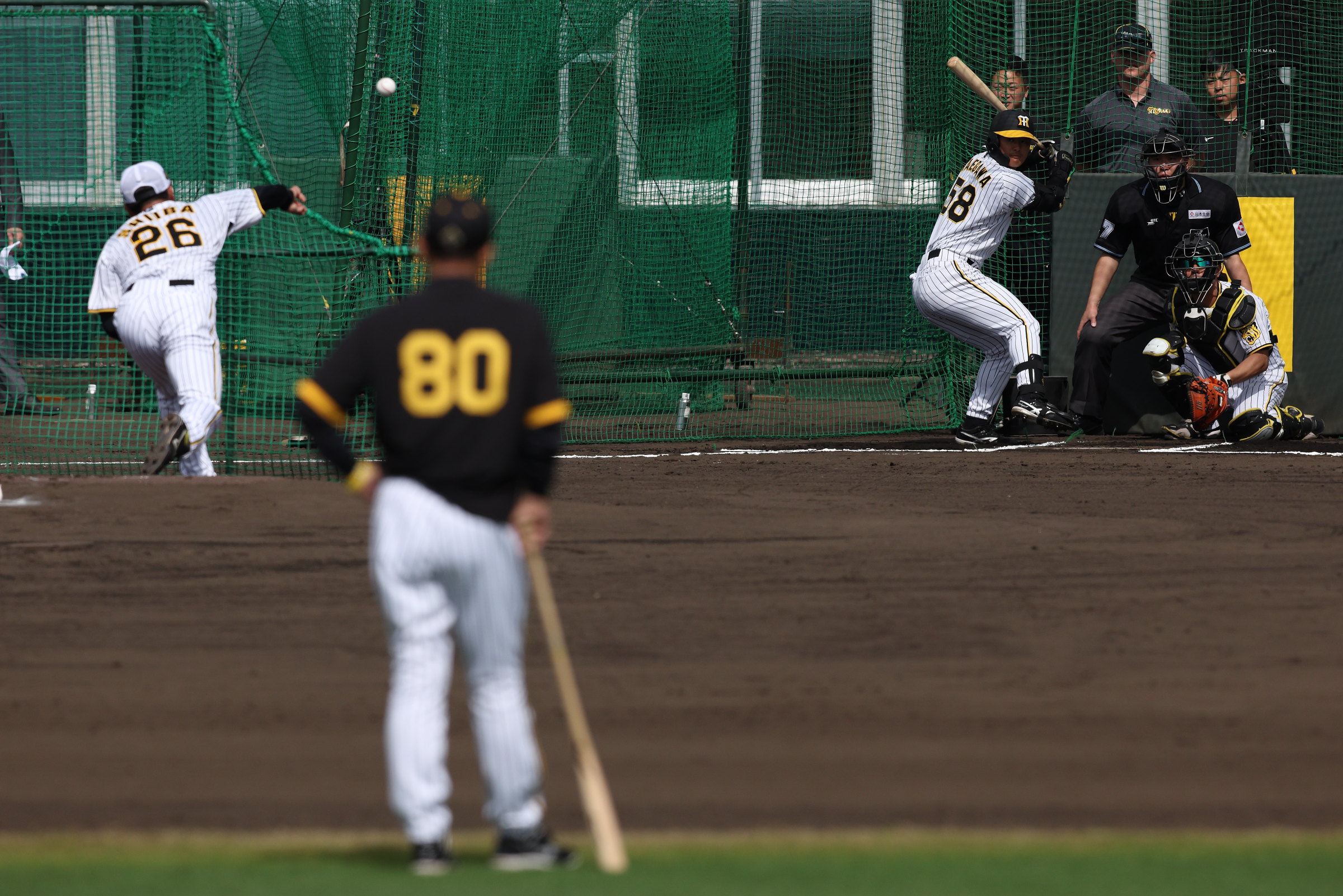 ルーキー椎葉がランチ特打のフリー打撃に登板し、前川と小野寺にカーブとスライダーを交え計40球を投じた。実戦は昨年9月以来で、「紅白戦で投げるために準備しておきたい」とチームで唯一登板を志願。安打性の打球は3本に抑え、「思ったよりバッターに向かって投げられたが、5球ぐらい連続ボールがあったのは良くなかった。7割ぐらいの力で投げたので、もっと出力を上げていきたい」と振り返った。見守った岡田監督は、「カーブは簡単にストライク取れそう」と即戦力右腕を評価。「どっちかと言ったら後ろのほうやろな。どんどん投げさせるよ」と、紅白戦やオープン戦での中継ぎ起用を示唆した。