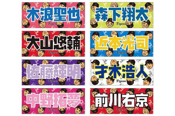 | 【奈良】フェイスタオル 1,650円 (木浪・森下・大山・近本・佐藤輝・ 才木・中野・前川) | 【奈良】シークレットアクリルキーホルダー(8種) 550円 (木浪・森下・大山・近本・佐藤輝・ 才木・中野・前川) |