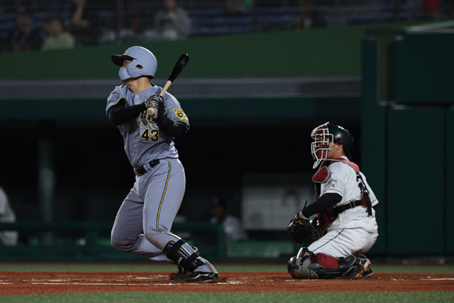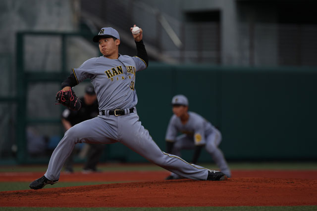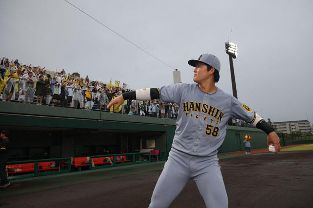 タイガースは先発の門別投手が5回、奪三振9で無失点の好投。打線は初回から嶋村選手の先制タイムリーなど3得点。6回にも町田選手、川﨑選手のタイムリーなどで得点を重ねます。7回裏に登板した富山GRNサンダーバーズ出身の松原投手は古巣を相手に三者連続三振に打ち取るなど、この試合は投打に独立リーグ出身選手が活躍して11対0の大勝となりました。