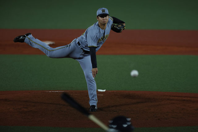 | 9奪三振無失点の好投を見せた先発・門別投手 | 古巣を相手に三者連続三振に打ち取る松原投手 |