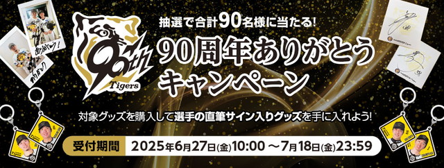 6月27日(金)より、阪神タイガース公式オンラインショップT-SHOP限定で、「90周年ありがとうキャンペーン」を開催いたします。