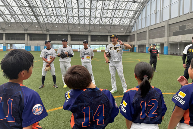 24日(木)、来年富山県で開催される「マイナビオールスターゲーム2026」を記念し、富山市にて阪神タイガース・ベースボールアンバサダーの秋山拓巳氏、地元・富山県の独立リーグ球団・富山GRNサンダーバーズのカズヨシ選手(島田倭吉)、武留選手(嶋田武留)、西尾柊哉選手を迎え、北陸地方の子どもたちに向けて野球の基本である「打つ」「捕る」「投げる」を楽しく体験できるイベントを開催しました。