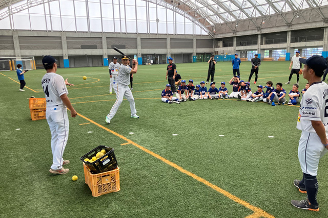 「打撃練習」エリアでは、「強い打球で遠くへ飛ばす」をテーマに、デモンストレーションを交えながら、丁寧な技術指導を行いました。