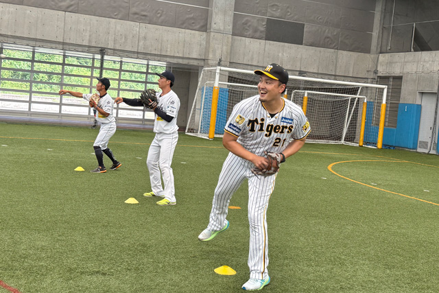 技術指導の後は、全員で対戦ゲーム「キャッチボールクラシック・タイガースVer.」を行いました。優勝チームには嬉しいサイン色紙のプレゼントも!