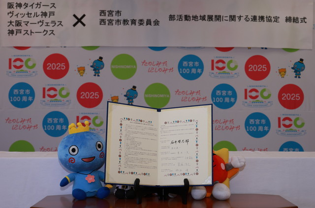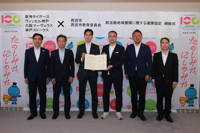 この協定は西宮市・西宮市教育委員会と西宮市に縁のあるスポーツのトップチーム(ヴィッセル神戸、大阪マーヴェラス、神戸ストークス、阪神タイガース)とにおいて、相互に連携及び協力を行い、双方の資源を有効に活用して協働することにより、西宮市における部活動地域展開について一層の促進を図り、ひいては市民の文化スポーツ振興に資することを目的としたものです。