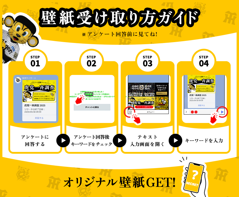 - 【公式LINE】「虎党一斉調査(アンケート)」実施中!「LINE限定 選手お守り風壁紙」プレゼント!!