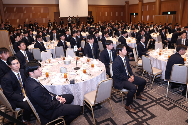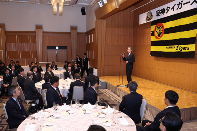 27日(木)、秦雅夫オーナー、粟井一夫社長、藤川球児監督をはじめ、コーチ、選手、職員が一同に集まり「2025年度阪神タイガース納会」を開催いたしました。