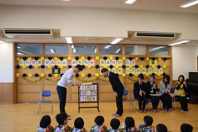 すごく喜んでくれましたし、夢中になって遊んでくれたことが嬉しかったです。今回はボールを投げるという野球につながるような玩具を贈らせていただきました。今後も野球を身近に感じられる取り組みを続けられるように頑張りたいと思います。