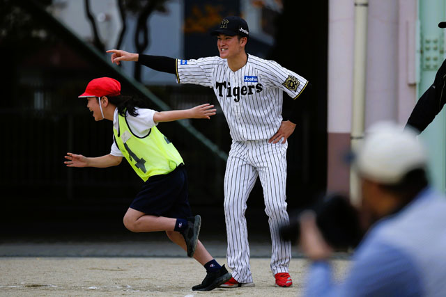 8日(月)、セントラル・リーグ公式戦のタイトルパートナーで、日本最大の発電会社である株式会社JERA(以下、JERA)の特別協賛による「JERAセ・リーグCHALLENGE次世代支援プロジェクト 阪神タイガース@尼崎市立竹谷小学校」が行われ、現役選手から豊田寛選手、髙寺望夢選手が、タイガースベースボールアカデミーから髙濱祐仁コーチ、望月惇志コーチが参加しました。