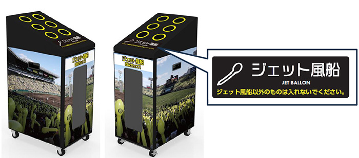 阪神甲子園球場では、ジェット風船を将来にわたって持続可能な演出として実施するため、使用後のジェット風船の回収とリサイクルに取り組みます。イベント当日は、球場内に専用回収ボックスを設置いたしますので、ご来場の方におかれましては、使用後のジェット風船の回収にご協力をお願いします。