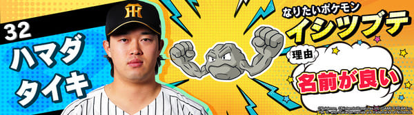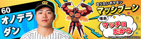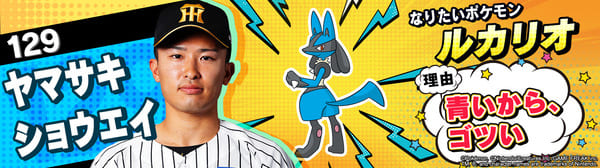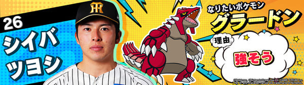 4月17日(金)~19日(日)、阪神甲子園球場での対中日ドラゴンズ戦において「ポケモンベースボールフェスタ2026 ~30年の想いをボールに込めて~」を開催。イベントに合わせて、タイガース全選手になりたいポケモンを聞いてみました!是非、推し選手のなりたいポケモンを探してみてください!!なお、イベント開催期間中は球場ビジョンでも紹介いたします。