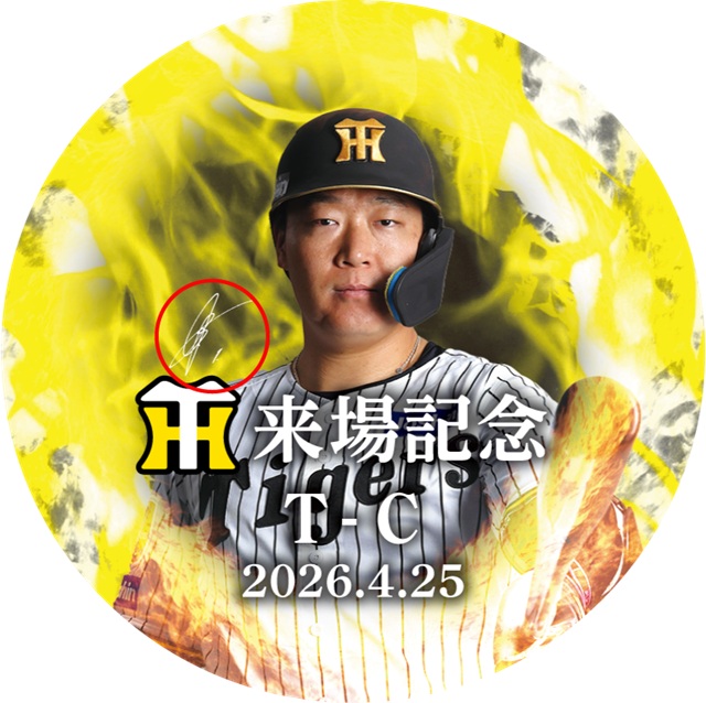 4/25(土)に阪神甲子園球場の場内にて販売いたしました来場記念缶バッジ(大山選手)におきましてデザインの表記誤りが判明いたしました。当該商品をお買い上げいただきましたお客様には多大なるご迷惑をお掛けいたしましたこと、心よりお詫び申し上げますとともに、今後は再発防止にむけて体制を強化して参ります。