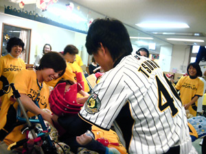 『Dream Linkプロジェクト』の一環として、21日(火)には、能見篤史選手、鶴直人選手が社会福祉法人四天王寺福祉事業団四天王寺和らぎ苑(富田林市)を、24日(金)には、久保康友選手と清水誉選手が社会福祉法人穴師福祉会ワークショップかりんを訪れました。施設の方々に歓迎を受けた選手達は、皆さんと一緒にクリスマスパーティーを楽しみました。