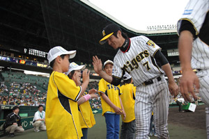 当日、試合に勝ったらヒーロー選手とグラウンドでハイタッチができる!