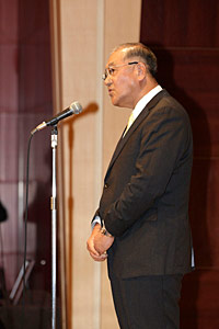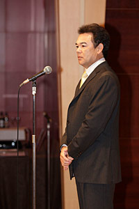 今季はファンの期待に応えられず申し訳ない気持ちで一杯です。原因は私を始め、フロントあるいはここにおられる皆さま方それぞれが責任を持っておられると思っております。是非ともオフにかけて十分に反省をして頂きたいと思っております。そして来季こそ8シーズンぶりのセ・リーグ優勝と日本一を達成いたしましょう。今季は悔しいシーズンでしたが、来季は経験豊かなコーチの方々、それから中村GMをお迎えして、来年こそ強固な体制を作っていきたいと思っております。中村GMに関しましては、監督・コーチ陣、選手間、あるいは我々とのフロントとの間のコミュニケーションを十分に取って頂き、長期的な目で強いタイガースを作る為に、お力をお借りしたいと思っております。長期的な目で見ていきたいというところですが、これは何も若手を優先的に使うとか、優勝を諦めて頑張るということでは無く、優勝を目指しながら将来を作っていく、今日を戦いながら明日を見る戦いをしていかなければ、タイガースはいけないと思っておりますので、この難しい課題を是非とも中村GMをはじめ、我々などでその課題を達成していきたいと思っております。来年は是非ともファンの皆様方のご期待に沿える様、タイガースの伝統と言いますか、先日のOB戦での先輩方の溌剌とした姿と、応援していただくファンの皆様方が沢山来られたことを本当に心に刻んで、来季こそ8シーズンぶりの優勝、日本一を是非とも達成したいと思っておりますので、皆様我々共々頑張りましょう。