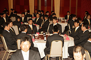 26日(月)、大阪市内のホテルに坂井オーナー、南球団社長、和田監督をはじめ、コーチ、選手、職員が一同に集まり