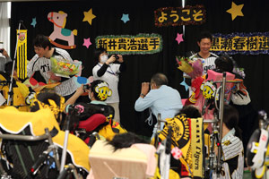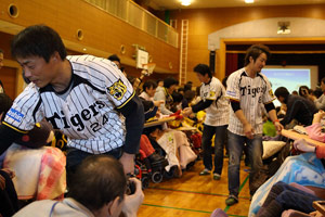 また20日(木)には、桧山進次郎選手、藤井彰人選手、浅井良選手、林威助選手、渡辺亮投手ら5選手が西宮市立養護学校(兵庫県西宮市)を訪問しました。