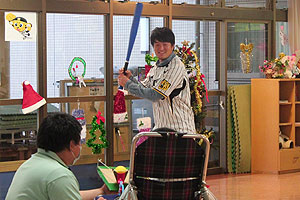 患者さんやセンターの皆さんからの歓迎を受けた藤浪選手は、クリスマスパーティーに参加したり、各病室を回り患者さんや患者さんのご家族とふれあいました。