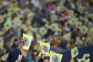 球場をイエローに染めて、グラウンドへ飛び出す選手に、パワーを送ろう!