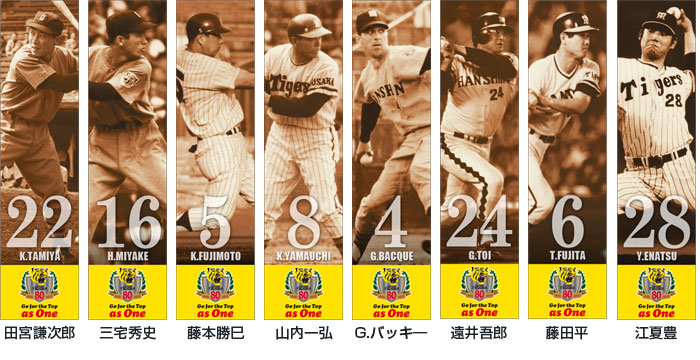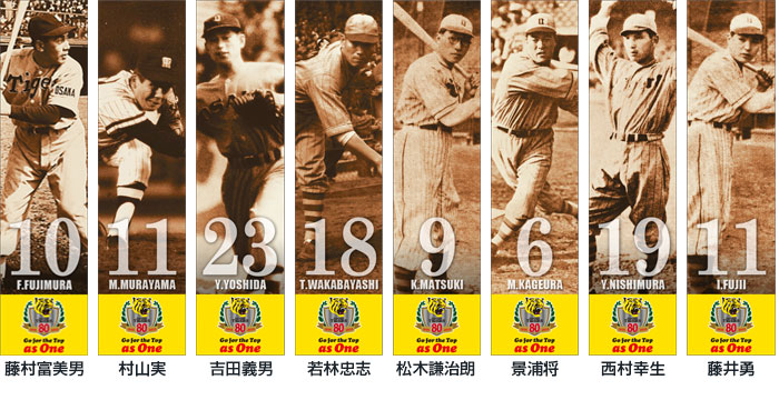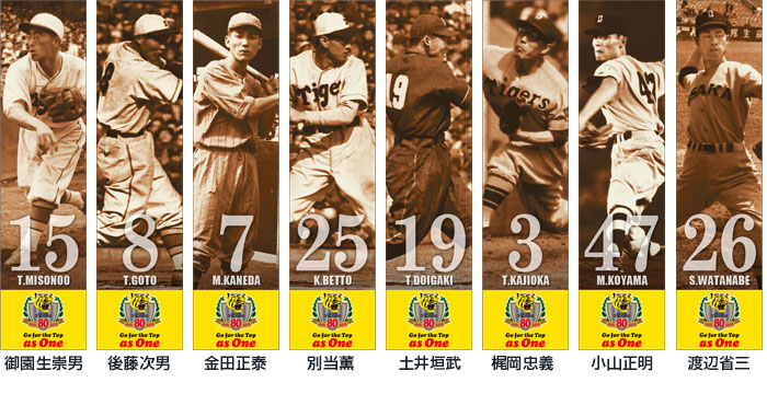 4月7日(火)の阪神甲子園球場での開幕にあわせて、球場外周に阪神タイガースの名選手達のバナー(懸垂幕)を掲出いたします。掲出するのは以下の32選手。球団創設80周年ならではの甲子園球場の景色をお楽しみください。