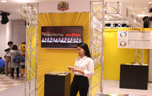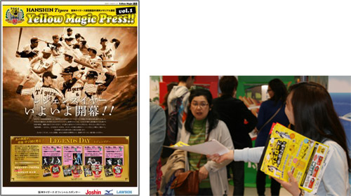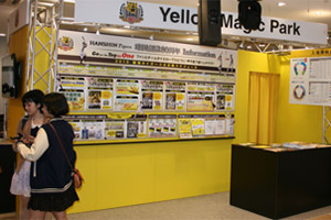 | 巨大情報パネルで80周年の話題を発信! チケット情報も提供!! | ブース周辺では、80周年記念フリーペーパー 「Yellow Magic Press!!」などを配布。 |