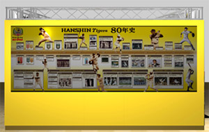 | 選手パネルと記念撮影! ※マスコットの出演日時詳細は未定 | 背面巨大パネルでは、 阪神タイガース80年の歴史を紹介。 |