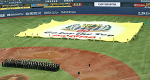 「ウル虎の夏2015」開催期間中の7月24日(金)、31日(金)の2日間において、試合前にイエロービッグフラッグを親子でグラウンドに拡げるイベントを開催。ただいまご参加いただける親子を募集中です。