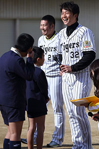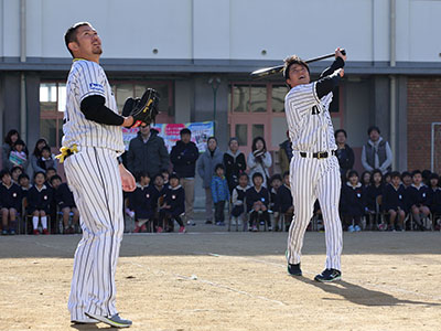- 岩田稔選手と新井良太選手が小学校を訪問