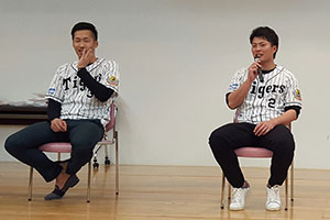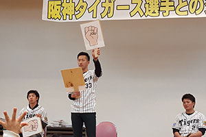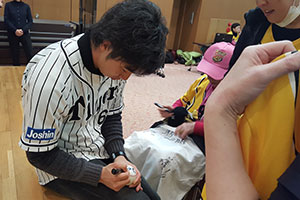 19日(土)、北條史也選手、西田直斗選手、緒方凌介選手の3選手が、伊丹市社会福祉協議会のクリスマス会に参加しました。会場は3選手のトークショーやじゃんけん大会、サイン会などで大いに盛り上がりました。