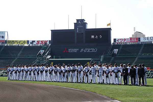 東日本大震災発生より丸5年となった11日(金)、甲子園球場での練習前に、フロント、監督、コーチ、選手、スタッフが黙とうを捧げ、震災によって亡くなられた方々のご冥福をお祈りいたしました。