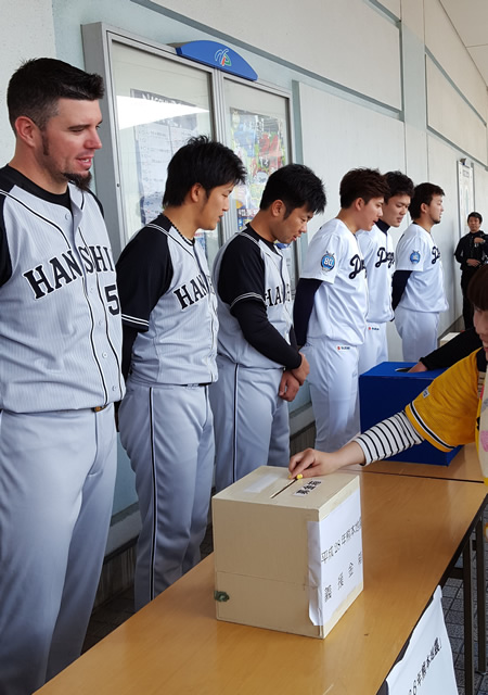 17日(日)、昨日に引き続き、阪神タイガース選手会と中日ドラゴンズ選手会が試合前のナゴヤドームにて募金活動を行いました。
