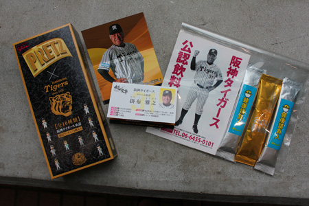 入場時には、掛布ファーム監督のカードやフィギュア入りのプリッツ、健康サプリをプレゼント。