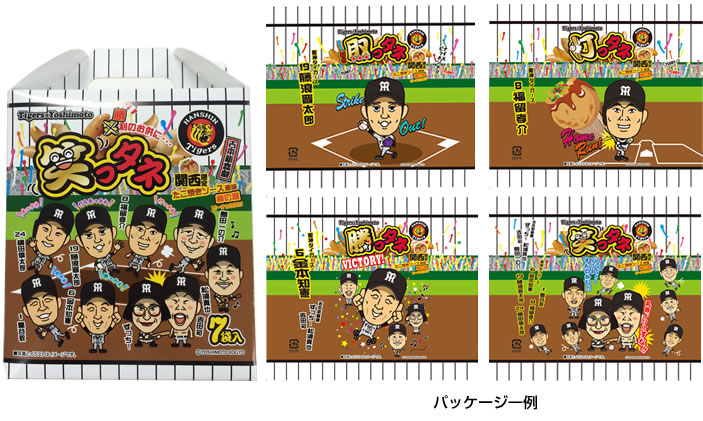 パッケージには、すっちー率いる吉本新喜劇メンバーと金本監督率いる阪神タイガース選手が夢の競演。