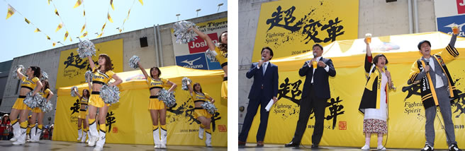 またステージでは、Tigers Girlsによるスペシャルダンスショーや、タイガースOBの藪恵壹さんと吉本新喜劇座長 すち子さん&シャンプーハット こいでさんらによるトークショー、さらにご来場のお客様とタイガースの勝利を願う乾杯をし、最もエキサイティングな乾杯をされた方を選出する「本日の乾杯大賞」を開催。ゲストとお客様が一体となり大いに盛り上がりました。