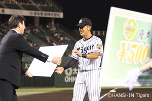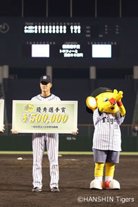 試合は残念ながら1対6とイースタン・リーグ選抜チームに敗れたものの、2回裏、ライトへソロホームランを放った板山選手が優秀選手賞を受賞と活躍しました。