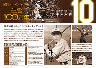 永久欠番「10」故・藤村富美男氏の生誕100周年(※1)を記念し、藤村氏の生誕日である8月14日(日)、京セラドーム大阪で開催する対中日ドラゴンズ戦において、藤村氏の功績を称えその闘志を継承していくメッセージとして、永久欠番「10」を帽子に刺繍し、選手、監督、コーチが着用する「永久欠番デー10」を開催します。