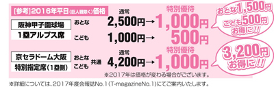 2017年に開催される阪神タイガース主催の公式戦チケット(一部を除く)をファンクラブ特別価格で購入可能!